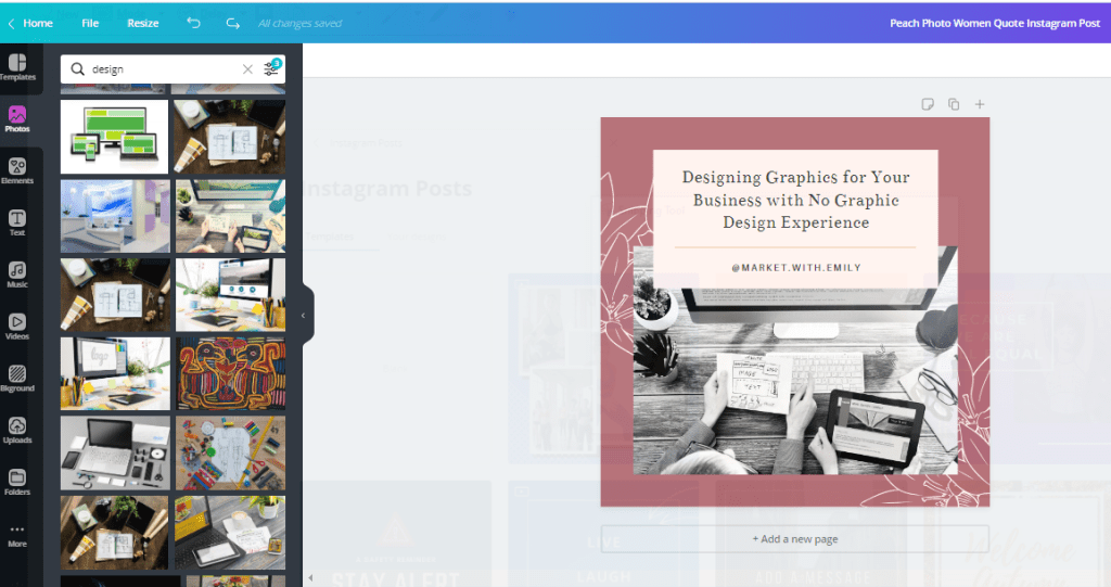 True story: I ran several Paid Facebook campaigns for MONTHS with graphics 100% designed by me, and I’ve never taken a graphic design course in my life. How did I do it? The same way I create all of the graphics for my blog and Instagram! I used Canva.